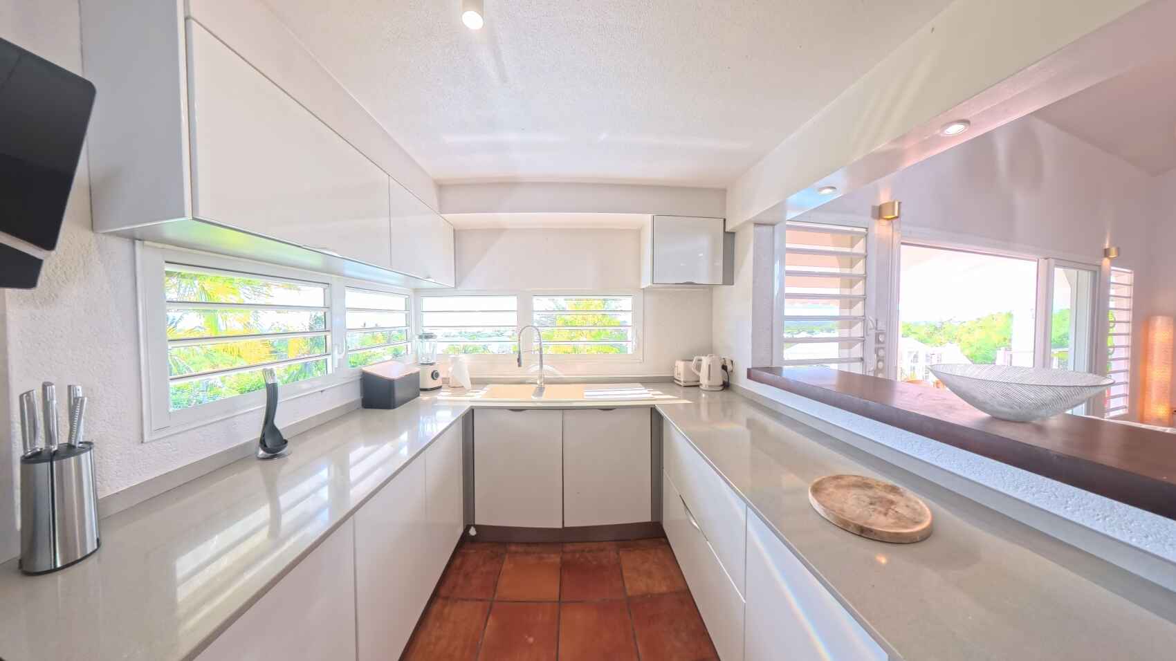 La villa se trouve dans un secteur calme de Saint-François, bénéficiant d’une ventilation naturelle appréciable toute l’année. La position en hauteur et la vue dégagée renforcent la sensation de sérénité au quotidien.